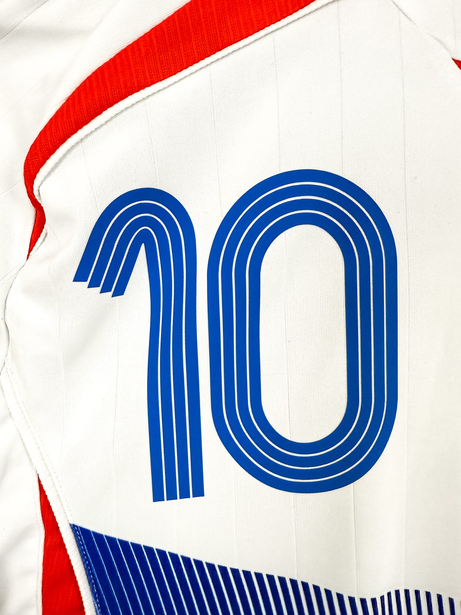 Version extérieure de l’Equipe de France 2006 pour la Coupe du Monde en Allemagne, au design épuré sur le célèbre template Teamgeist. Floqué ZIDANE #10, que dire de plus ? Témoin d’un chef-d’œuvre inachevé et dernière danse du maestro… gravée à jamais dans l’histoire.